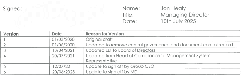 The Managing Director has overall responsibility for ensuring this policy complies with our legal and ethical obligations, and that all those under our control comply with it.